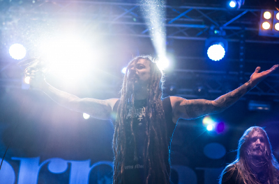 Primordial – лично для меня это вторая по значимости группа на фестивале в этом году. В короткий сет лист ирландцы умудрились вместить свои главные хиты, первая же вещь “No Grave Deep Enough” доставила неимоверно, как в общем и остальные исполненные композиции. Группа выложилась более чем на 100 процентов, особенно вокалист, чье поведение на сцене по своему характерно, и видно что живые выступления занимают особую часть в истории группы. Звук был несколько перегружен, но в целом все отлично читалось, так что особых нареканий в этом плане нет. Осталось только увидеть Primordial сольно в Киеве, слишком много у них хороших композиций, которые к сожалению просто не вмещаются в фестивальный формат.
