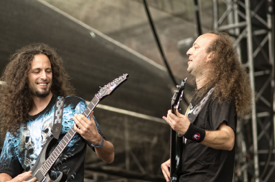 В этом году фестиваль официально стал 4-х дневным – первый день, ранее был pre-party, сейчас стали учитывать как полноценный фестивальный день. Мы без проблем добрались из Брно до Яромера, порадовавшись комфортабельному поезду следовавшему из немецкой глубинки в Прагу, и уже знакомыми дорогами попали на территорию кэмпинга. Поскольку время было около обеда, то очередь на регистрацию в вип лагерь была крайне мала. Поставив палатку мы сразу же на территорию фестиваля, ибо крайне хотелось употреблять еду и пиво, то бишь кушать. Стоит отметить, что в этом году пиво было ограниченно Будвайзером (светлое 10° за один жетон, светлое 12°, темное и смешанное по полтора жетона каждое) + сидр Сомерсби (не разливной). Темное пиво меня порадовало и употреблялось на протяжении всех дней кроме последнего, когда оно внезапно закончилось :( Выбор еды стал богаче – появились киоски с мексиканской едой, британской fish&chips, картофельными чипсами, кофейня, а также сладкая выпечка напоминающая по форме тесто без сосиски. Цены по сравнению с прошлым годом, вроде как, не изменились – все в пределах от 1.5 до 4-х жетонов (один жетон 30 крон, т.е. немногим больше евро). Зато не было мороженного, что довольно отрицательно сказалось на самочувствие в 35 градусную жару. Побродив еще немного по территории, был обнаружен шатер Маршалл, где в последствии проводились мастер классы и джемы и была возможность приобрести гитары Шектер по очень вкусной цене; а также отличный стэнд фирмачей от Nuclear Blast Records с распродажей дисков (сразу же схватил альбом I – “Between Two Worlds” за смешные 4.9 евро). Точек с пивом стало больше. Для инвалидов поставили отдельную площадку, а у здания с сценой Obscure практически снесли стены. Вот и все внешние изменения (по крайней мере на первый взгляд). Тем временем со сцены начали доносится звуки выступления первой группы и мы поспешили туда.